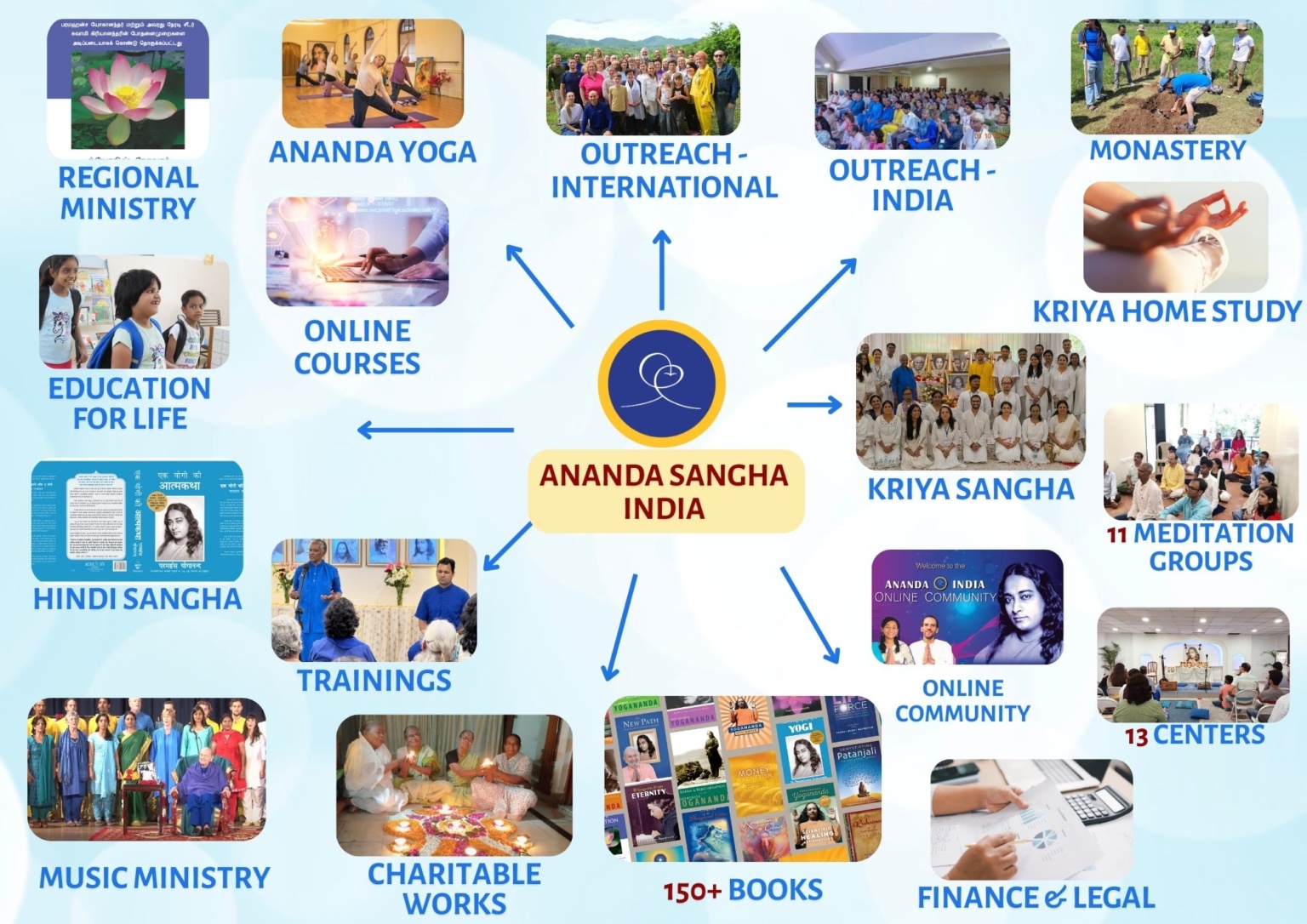 - Outreach of Paramhansa Yogananda’s teachings as shared by Swami Kriyananda