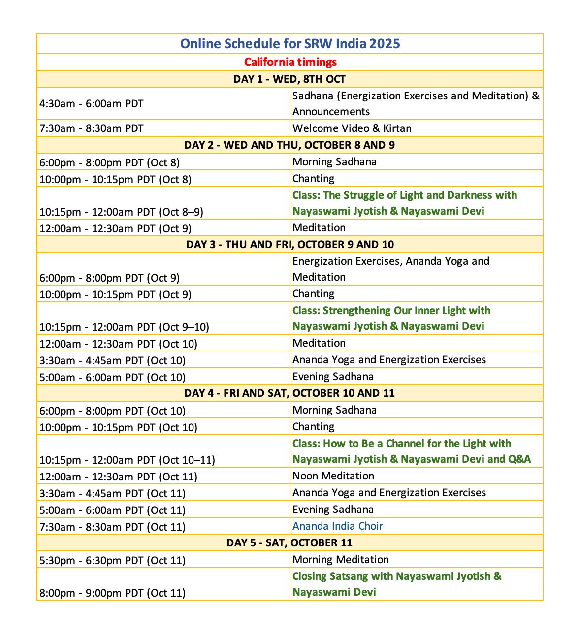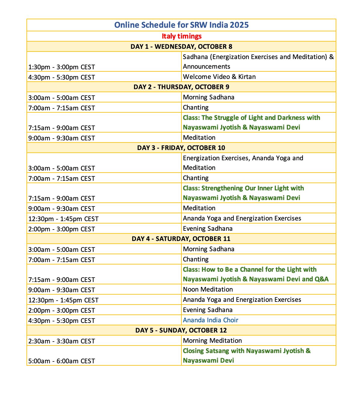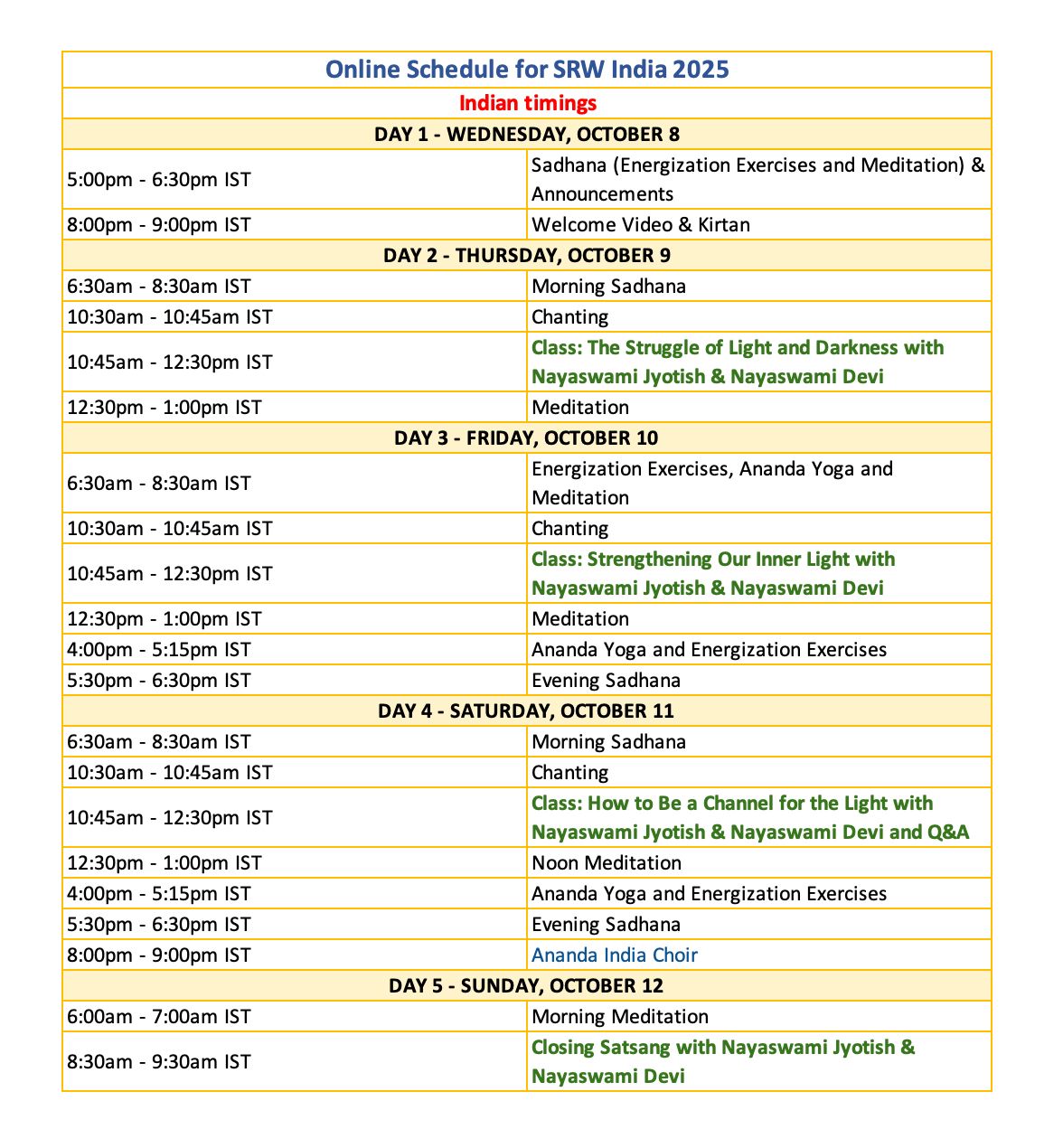 This will give you access to the online broadcast of the Spiritual Renewal Week (October 8 to 12, 2025) from Puri, India. We will add you to a whatsapp group upon payment where we will share the broadcast link and other real time updates.
